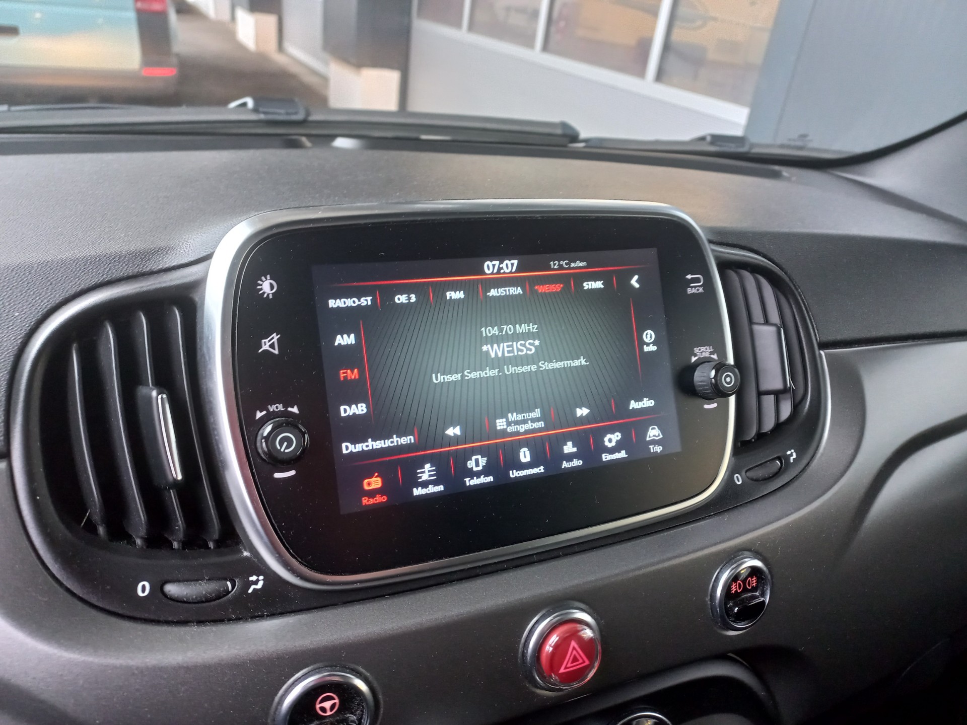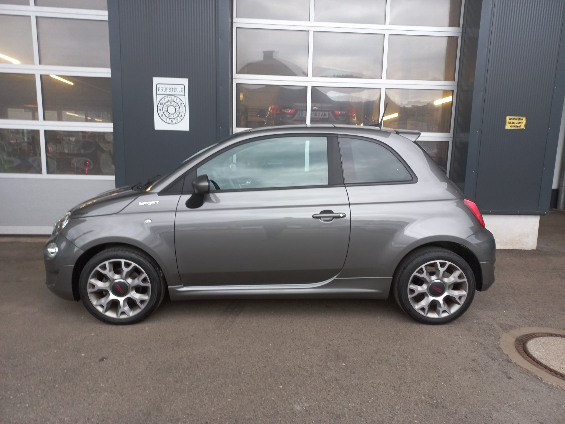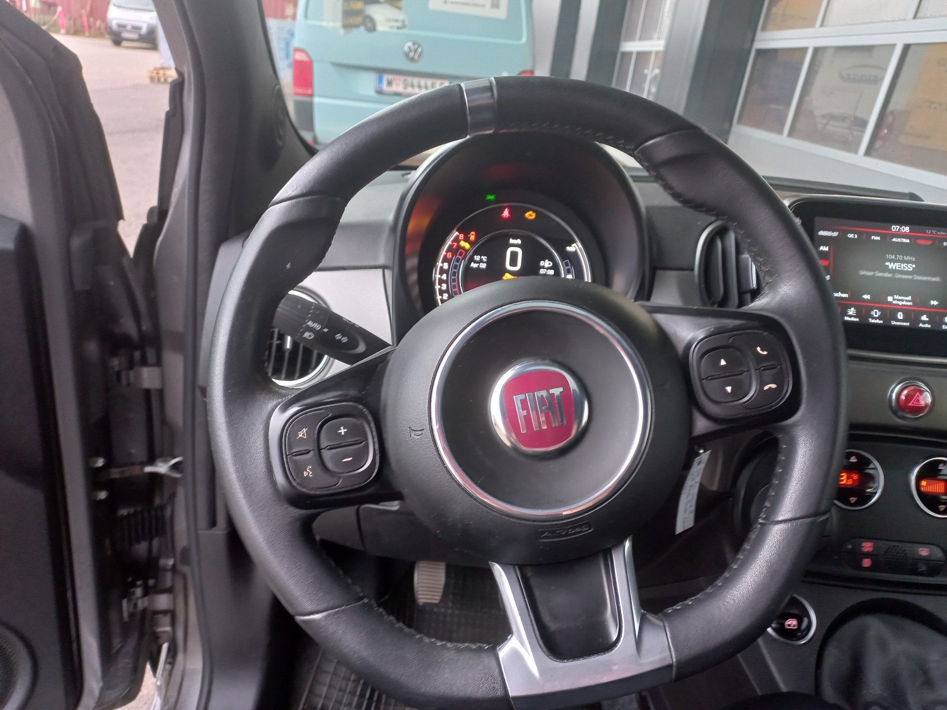 Fiat 500 mit 70 PS, Klimaanlage, Radio, Bluetooth-Freisprecheinrichtung, Parksensoren hinten, Panorama-Glasdach, geteilte Rücksitzbank, elektr. Fensterheber vorne und mehr!